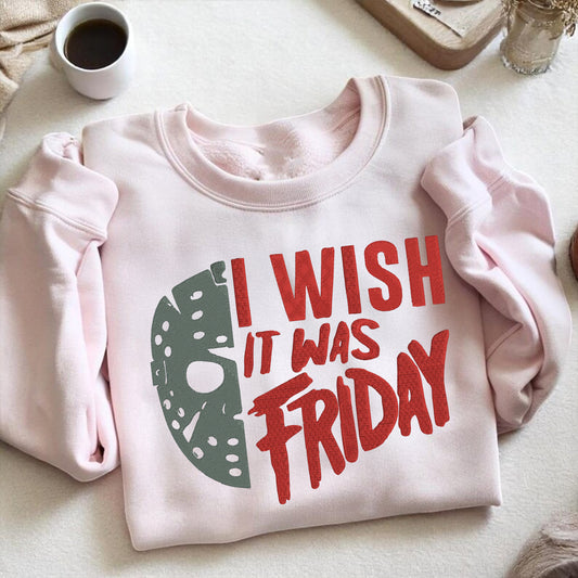 Embroidered I Wish It Was Friday Sweatshirt, Retro Halloween Shirt