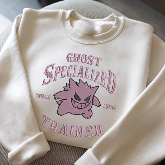Embroidered Ghost Specialized Trainer Sweatshirt, Poke'mon Halloween Shirt