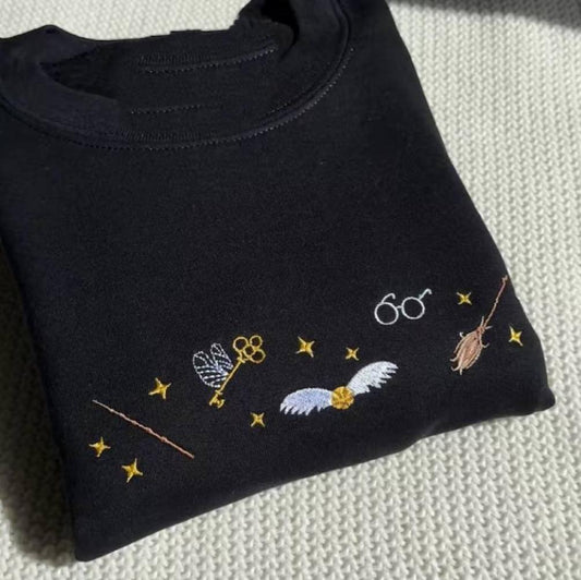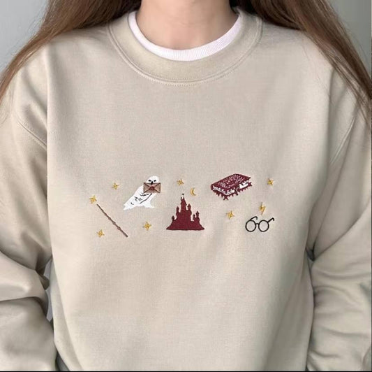 Embroidered Harry Potter Inspired Sweatshirt, Wizard Aesthetic Cozy Shirt