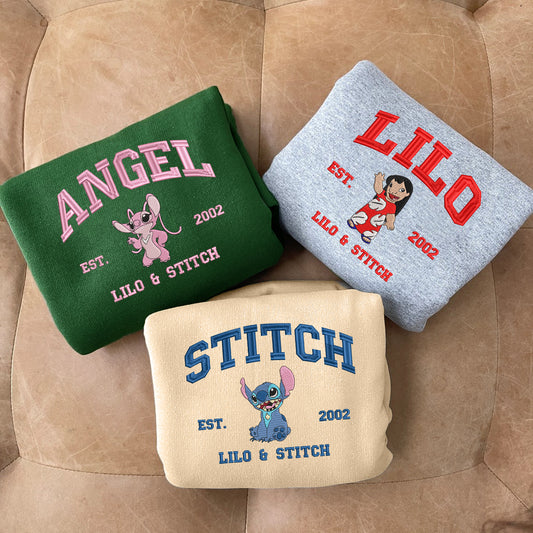 Embroidered Lilo & Stitch Matching Sweatshirt, Disney Cartoon Shirt
