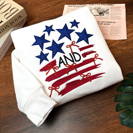 Embroidered Independence Stars & Bow Sweatshirt, Sweatshirt for Independence Day
