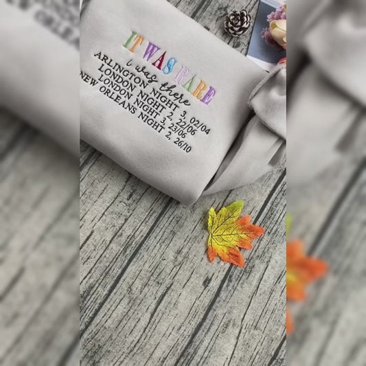 Embroidered It Was Rare Sweatshirt, Customizable City, Date & Surprise Songs
