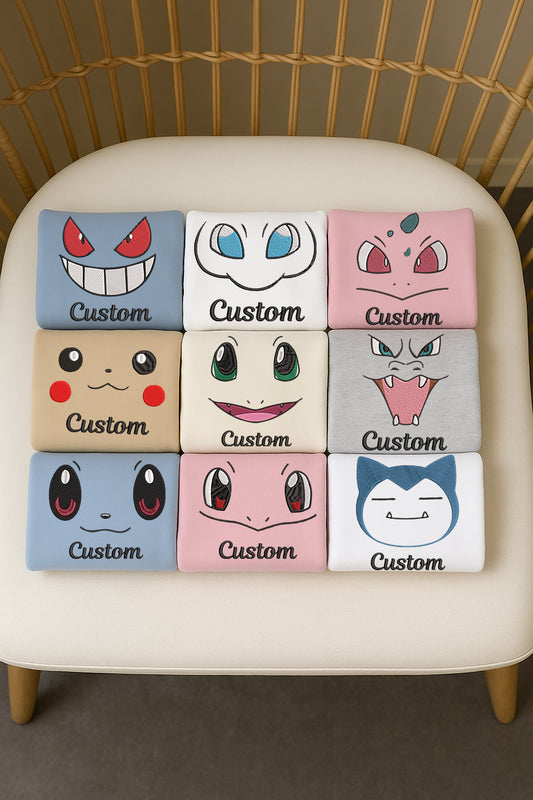 Custom Pokémon Face Embroidered Sweatshirt, Poke'mon Personalized Shirt