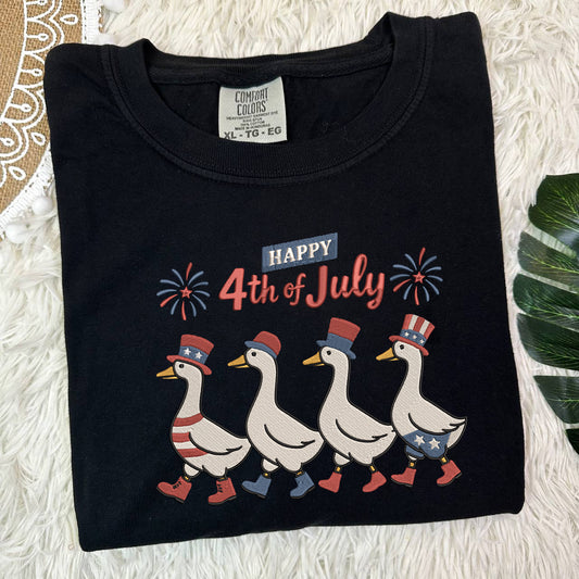 Embroidered Adorable Silly Goose Comfort Color T-Shirt, Happy 4th of July Shirt