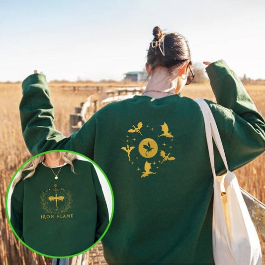 Iron Flame Embroidered Sweatshirt, Gold Moon Wings Embroidery Hoodie