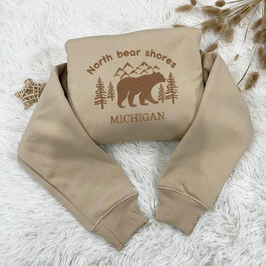 North Bear Shores Michigan Embroidered Shirt, Nature Style Shirt