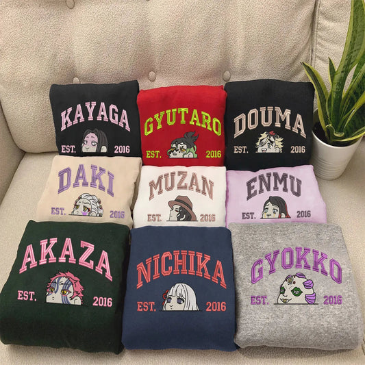 Upper Moons Demon Slayer Embroidered Sweatshirt, Anime Villain Hoodie