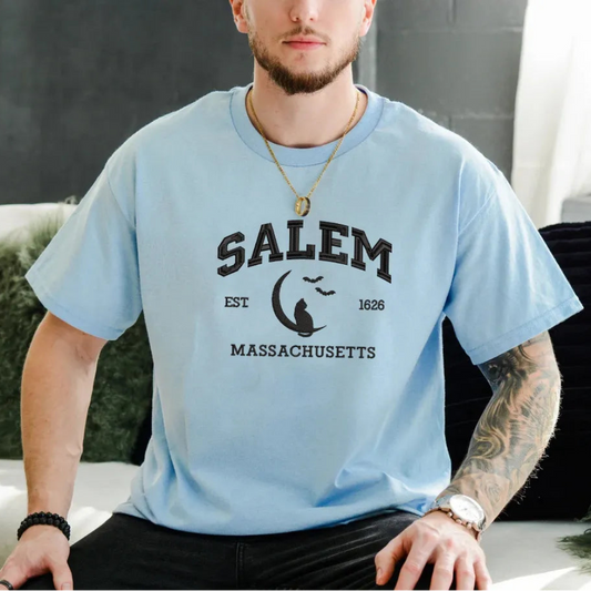 Salem Massachusetts 1626 Embroidered Sweatshirt, Retro Witchy Hoodie