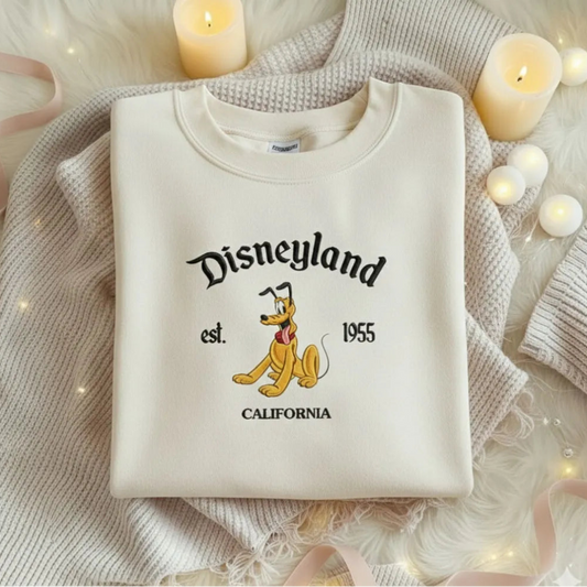 Vintage Theme Park Embroidered Hoodie, Cartoon Inspired Crewneck Shirt