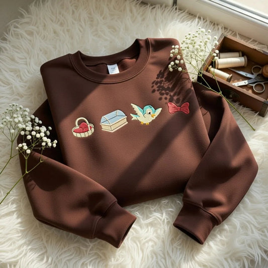 Cinderella Sew Friends Embroidered Shirt, Blue Bird Cottagecore Hoodie