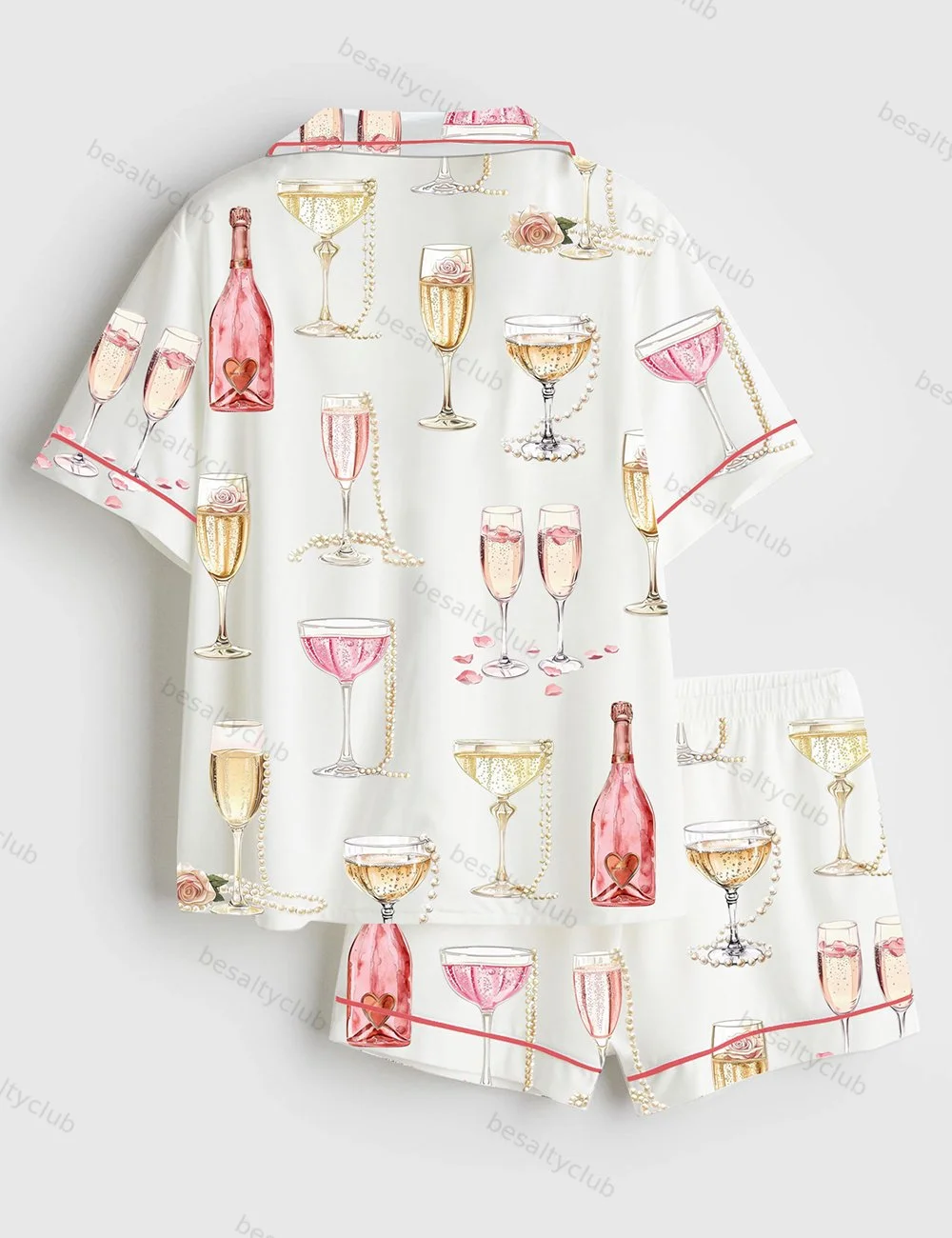Featuring an elegant all-over print of champagne glasses, bubbly bottles and delicate pearls, this silky-soft two-piece set adds a touch of luxury to any bridal morning, bachelorette party or girls’ getaway. The lightweight satin fabric feels smooth on the skin while the chic design brings a classy, feminine vibe — perfect for getting-ready photos, bridal gifts or sipping prosecco in style.