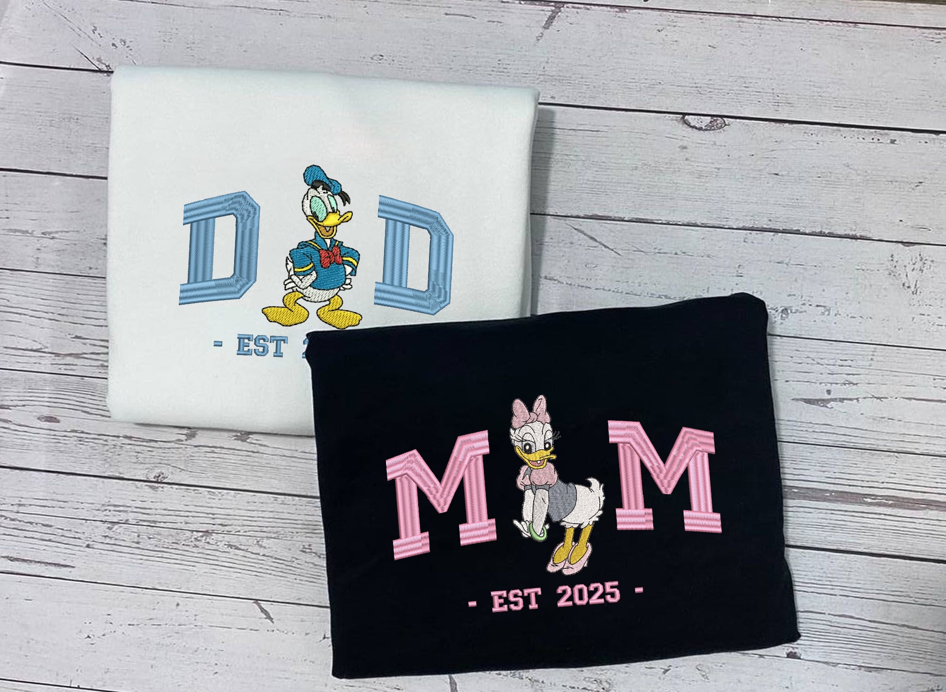 Introducing our delightful "Mom" and "Dad" embroidered sweatshirt set featuring beloved Disney characters! These cozy sweatshirts are perfect for showing off your family spirit while enjoying comfort and style. Whether you're having a family movie night or heading out for an adventure, this matching set is a must-have!